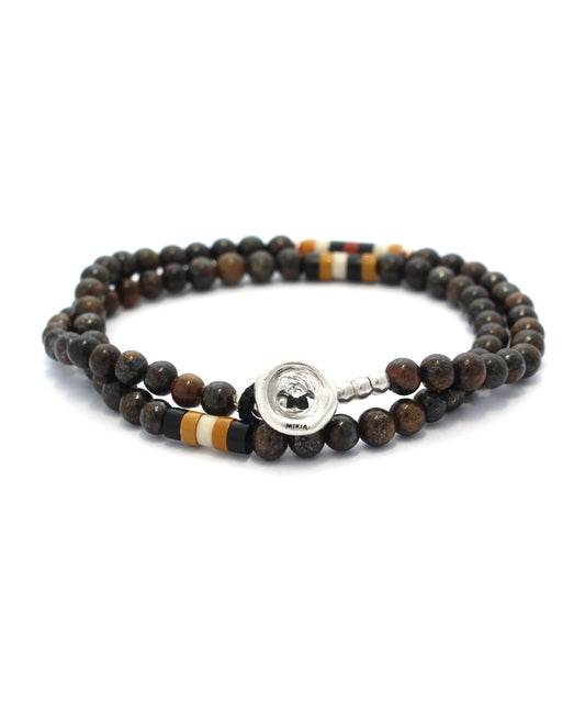 4mm stone double wrap bracelet / bronzite