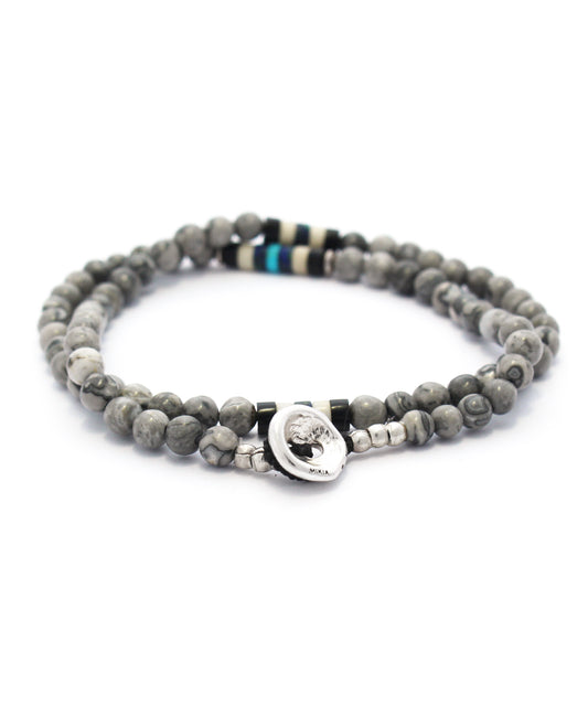 4mm stone double wrap bracelet / grey jasper