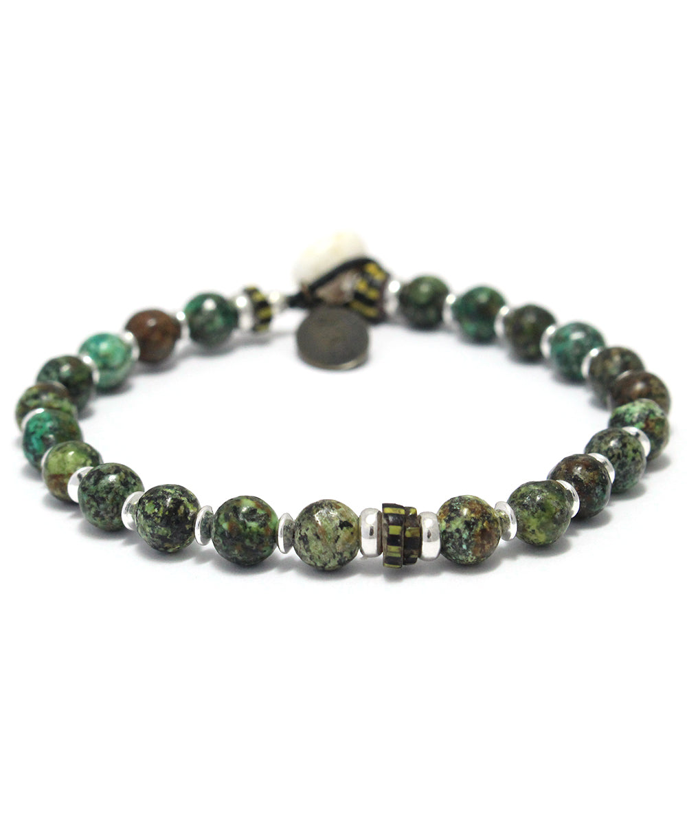 African turquoise is a natural stone that is produced in Africa and is named for its resemblance to turquoise. We designed this bracelet to have both a natural and cool impression.
