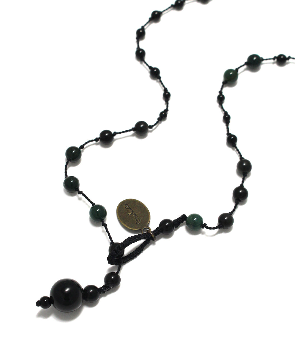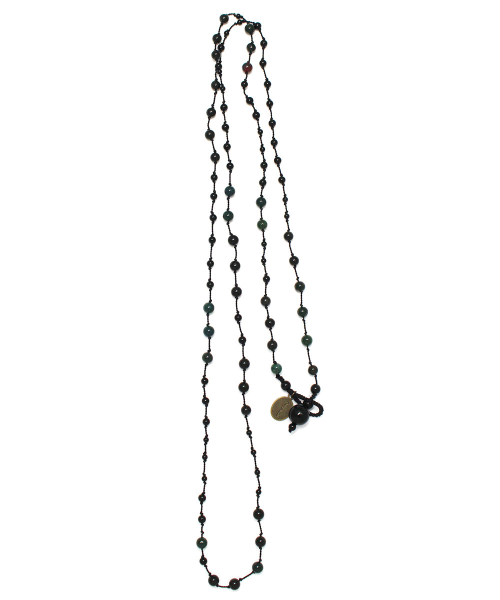 AIYANA long necklace / obsidian × bloodstone × onyxblack|green