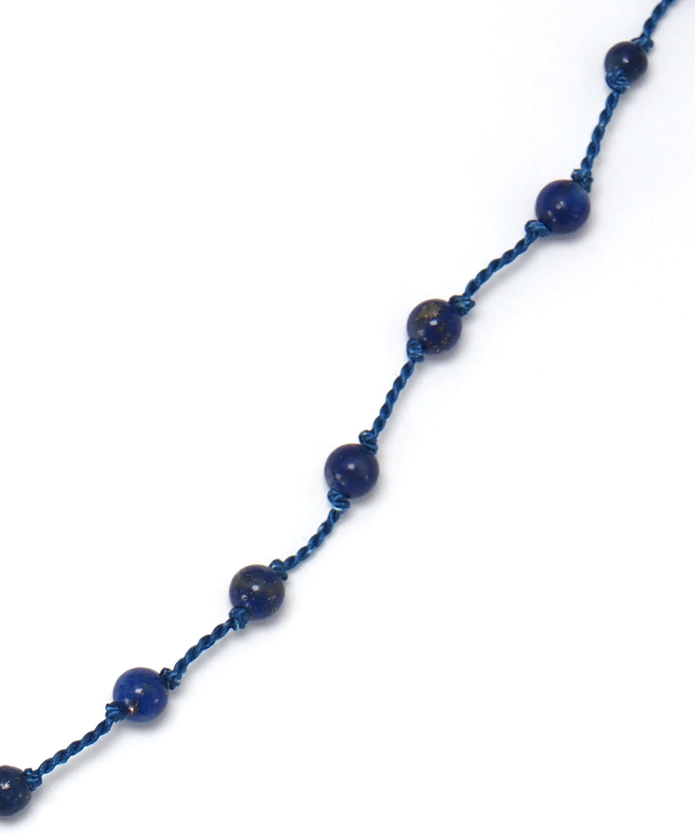 Necklace with mysterious lapis and delicate shine of Rainbow Obsidian. The silk cord used in this necklace is dyed with plant made of natural materials. You can enjoy the kindness of carefully dyed threads one by one and the contrast of natural stone.