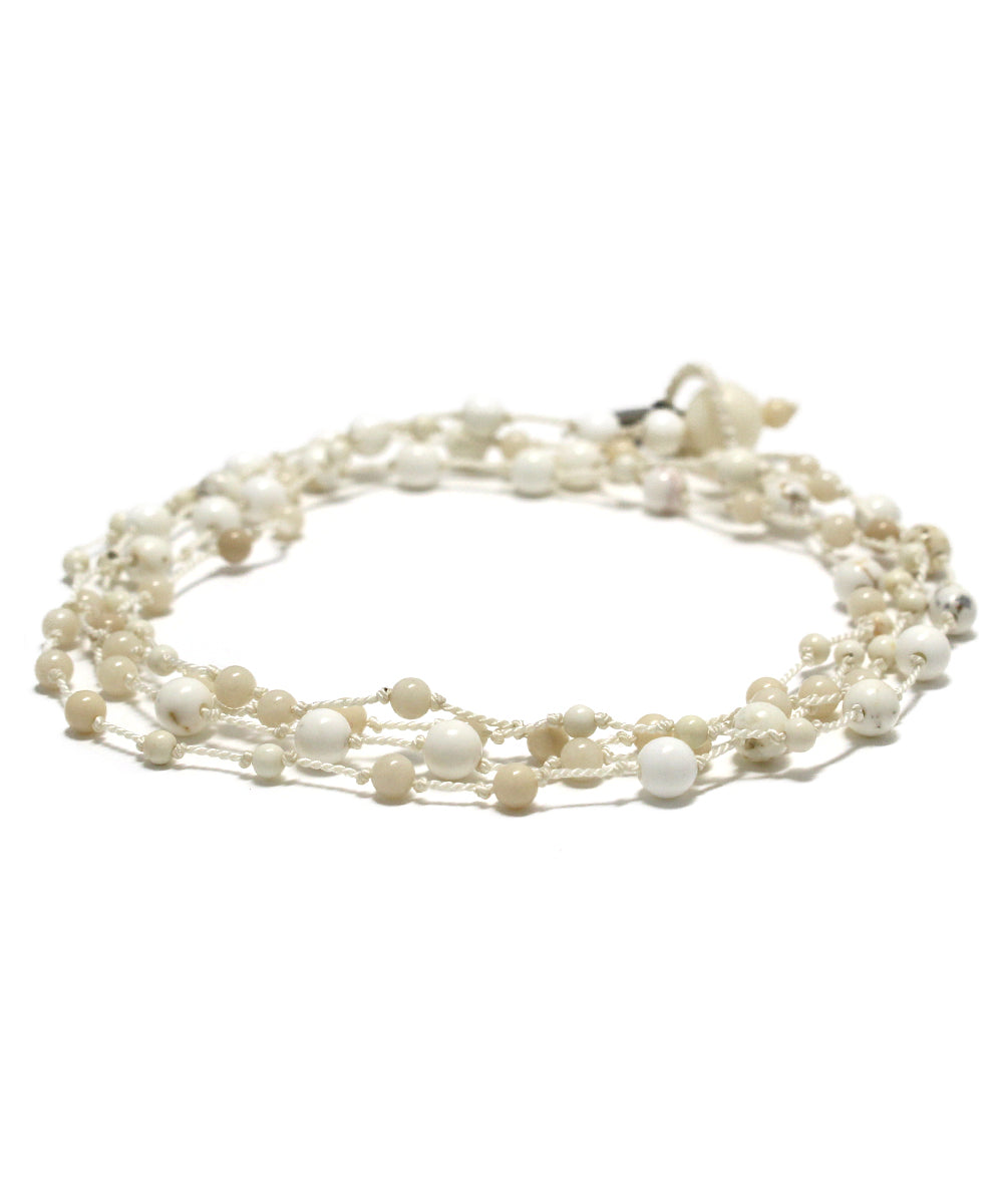 The AIYANA necklace combines matte white magnesite, reminiscent of the streets of Greece, with river stones.