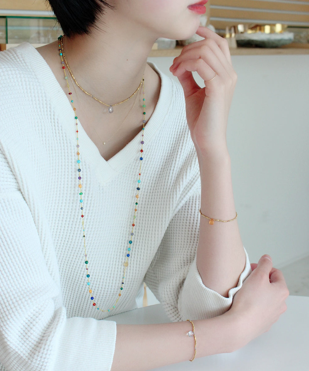 Mikia's unique collection of long necklaces, which can only be made by hand, is a series inspired by a woman named AIYANA.