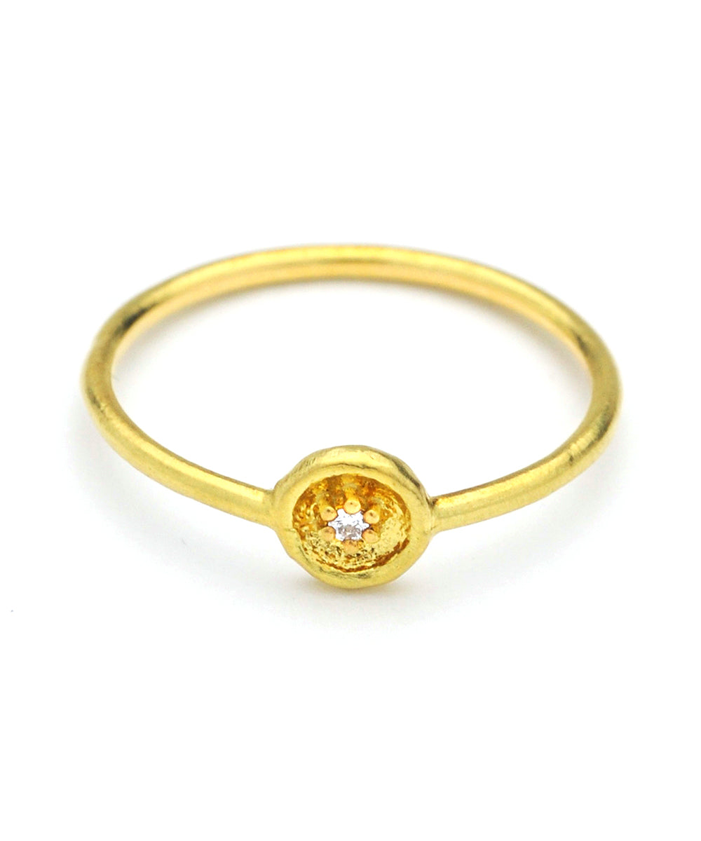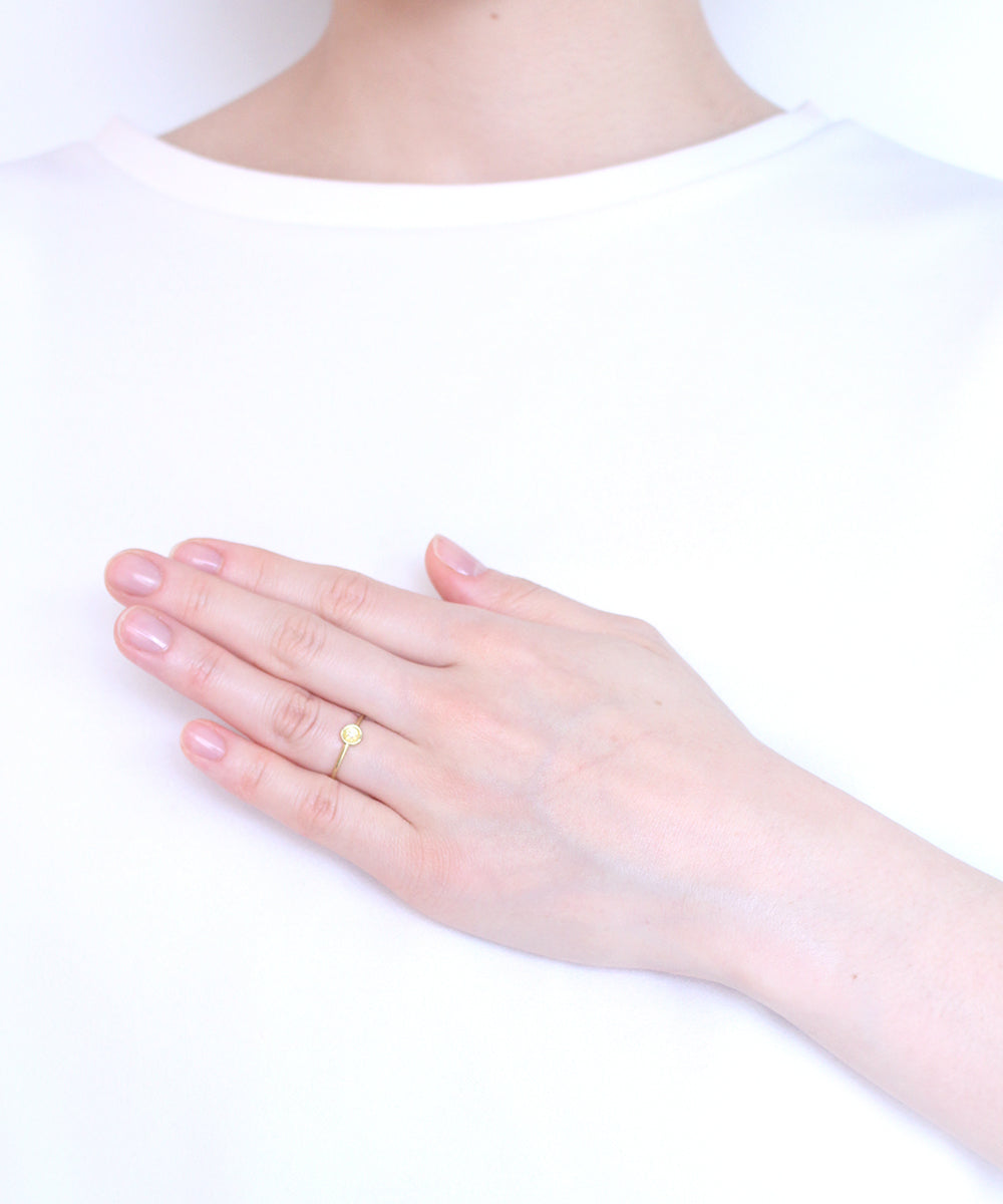 k18 gold and diamond ring, a diamond is fastened with small six claws on a plate motif.