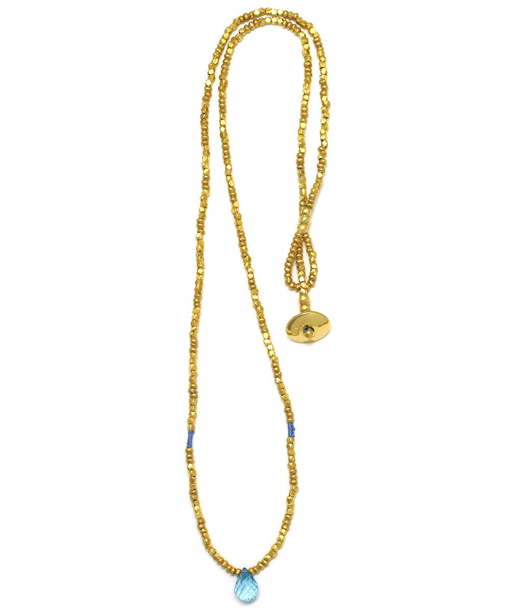 karen silver beaded necklace / blue topazblue|clear|gold