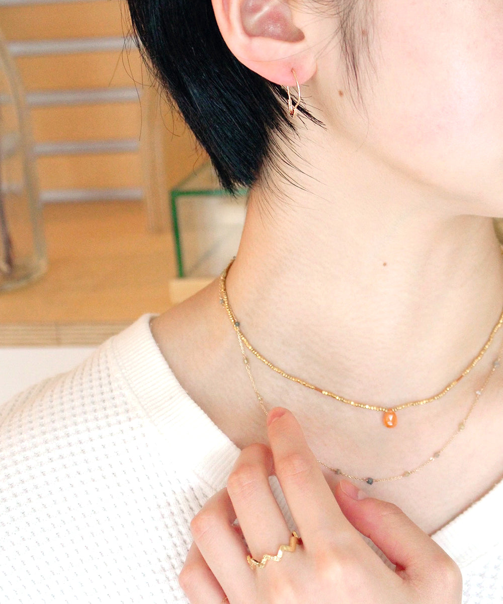 素肌と一体化したような軽さと控えめなカラー、存在感のあるデザインが特徴のskinシリーズピアスです。