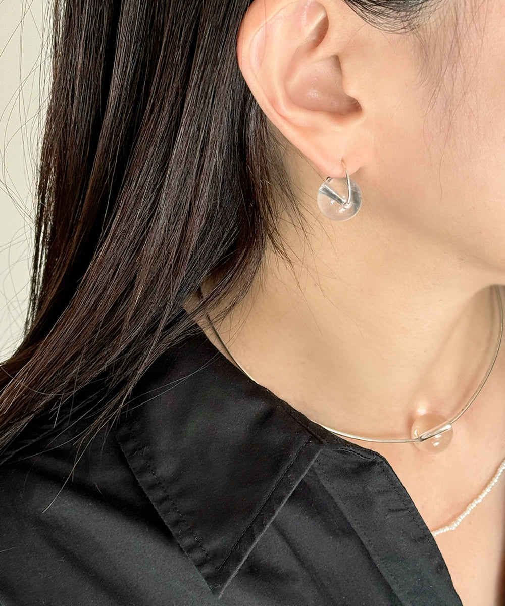 どの角度からもクリスタルの美しさが引き立つミニマルなデザインで、シーンを選ばず身につけられるアイテムです。