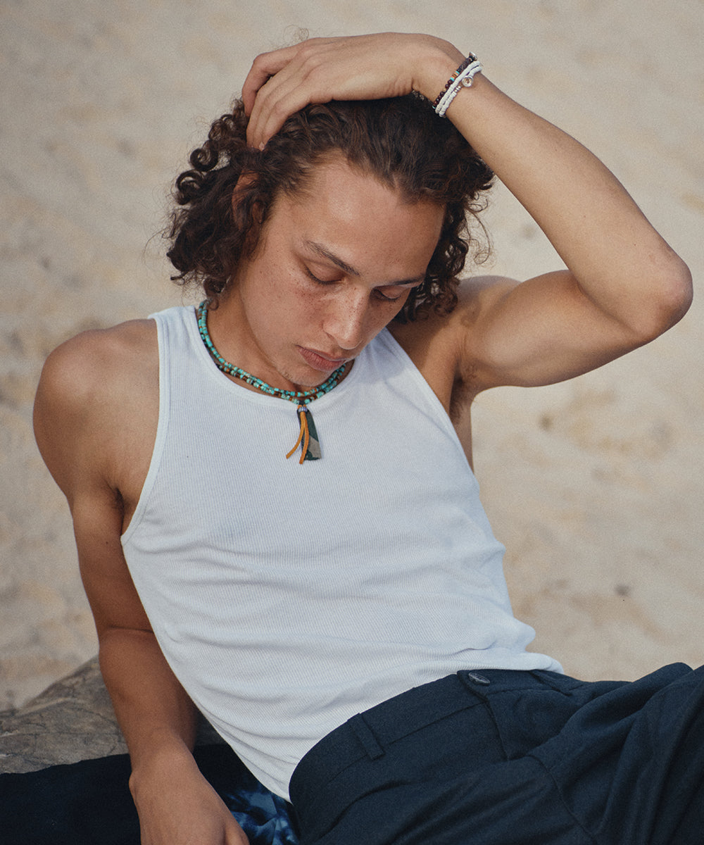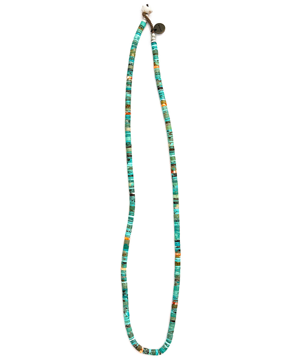 様々なグリーン系のターコイズのネックレス。全てが違う表情のターコイズ組み合わせが絶妙なカラーリングです。がMIKIA留め具のプカシェルがナチュラルな雰囲気を演出しています。