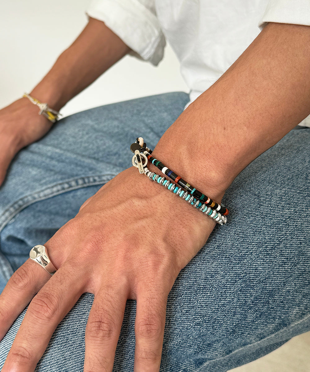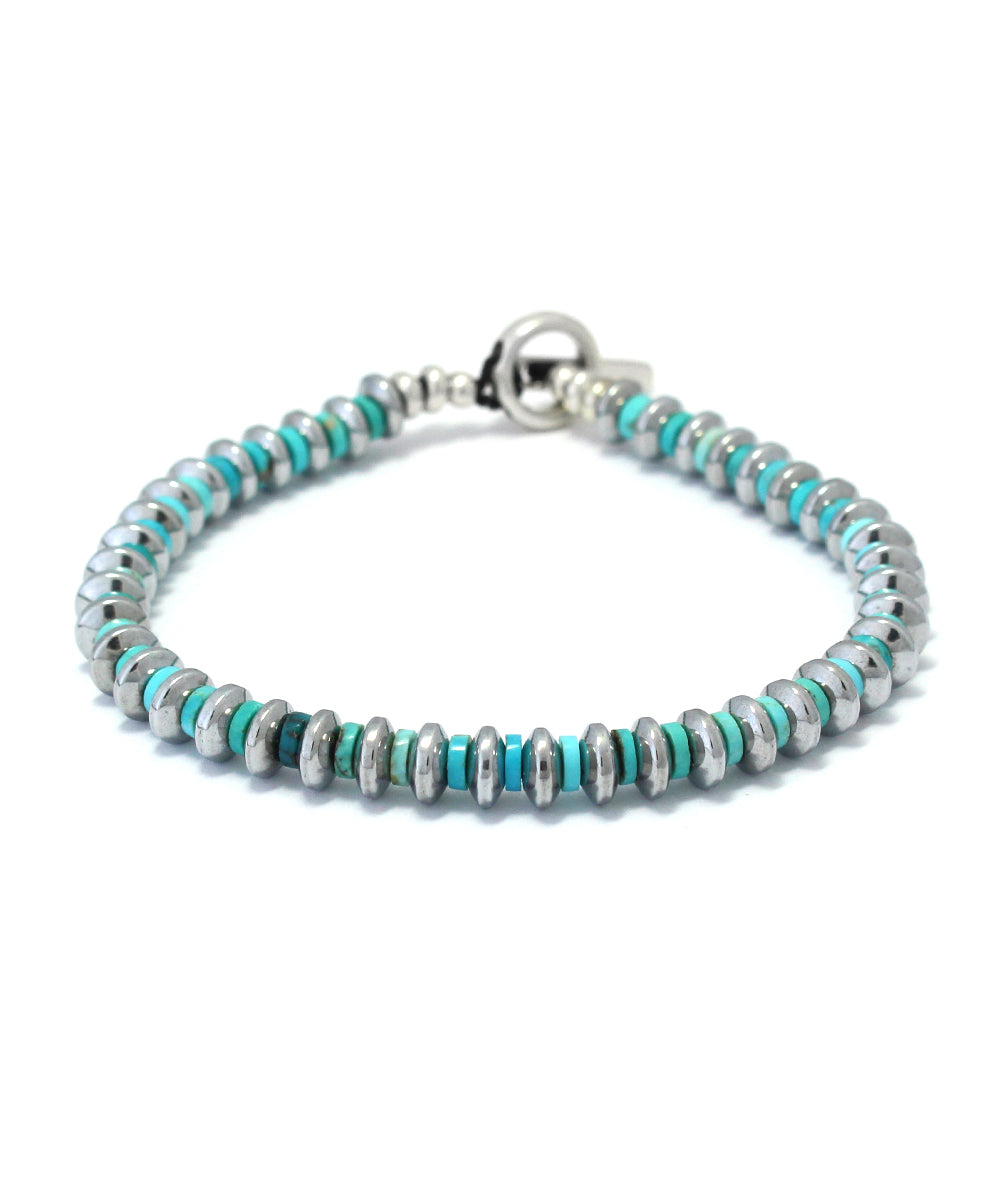 hematite roundel beads bracelet / turquoisesilver|turquoise