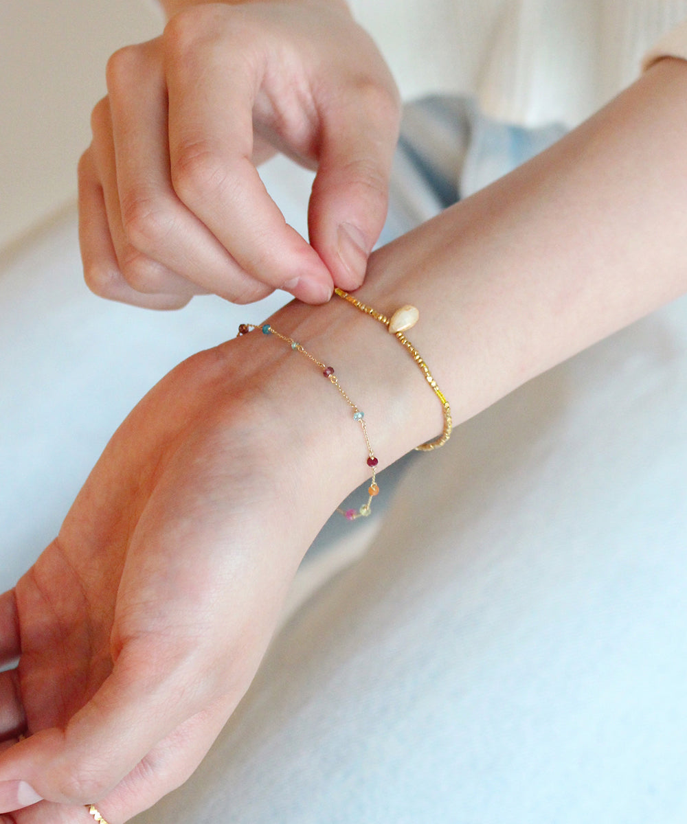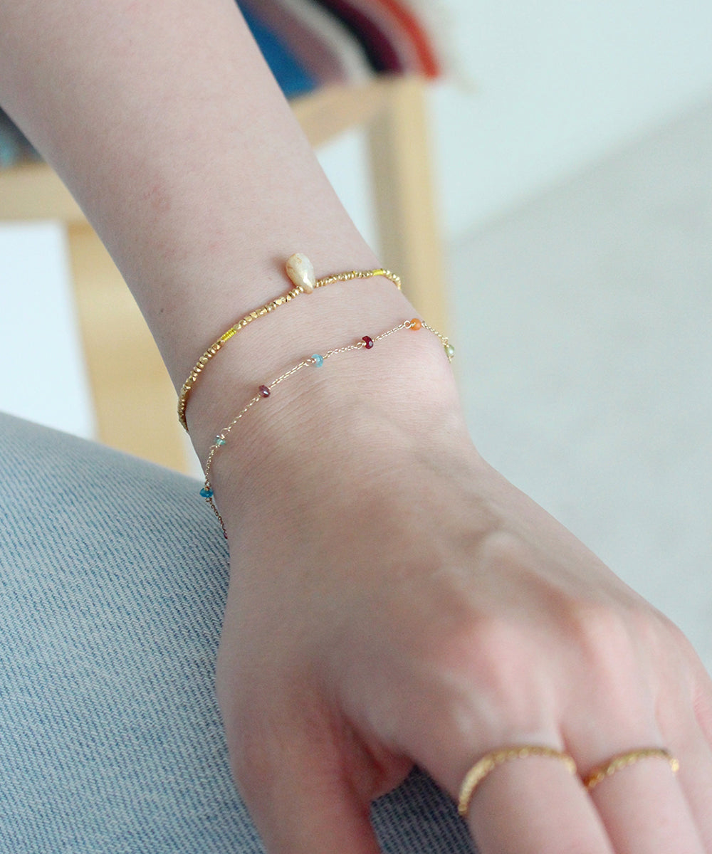 karen silver beaded bracelet / corundumbeige|gold|yellow