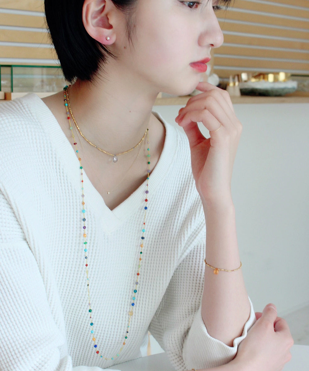 果実のようなオレンジの半貴石と、ゴールドとのコントラストが、華やかでボヘミアンな雰囲気です。