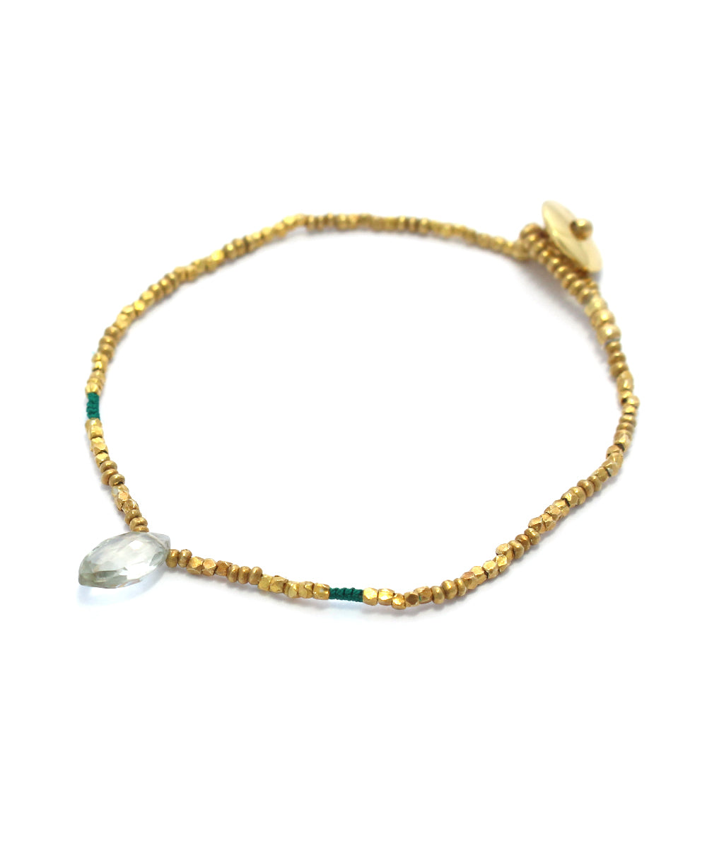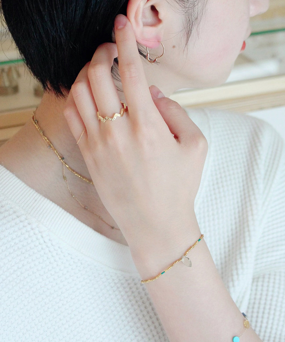 薄いグリーンカラーのグリーンアメジストと、ゴールドとのコントラストが、華やかでボヘミアンな雰囲気です。