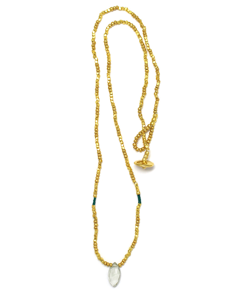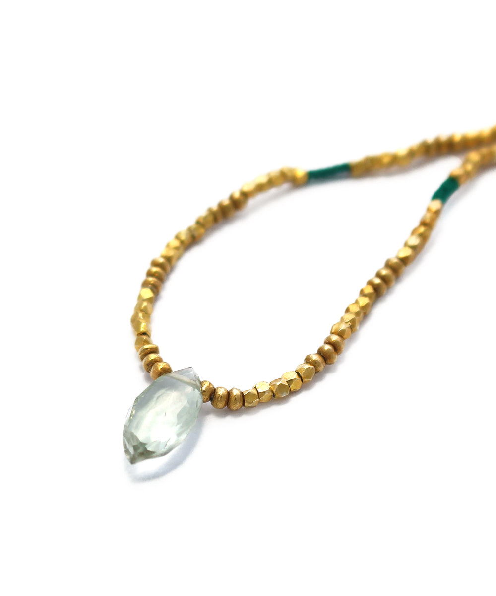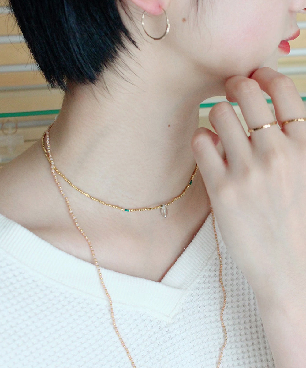 karen silver beaded necklace / green amethystclear|gold|green