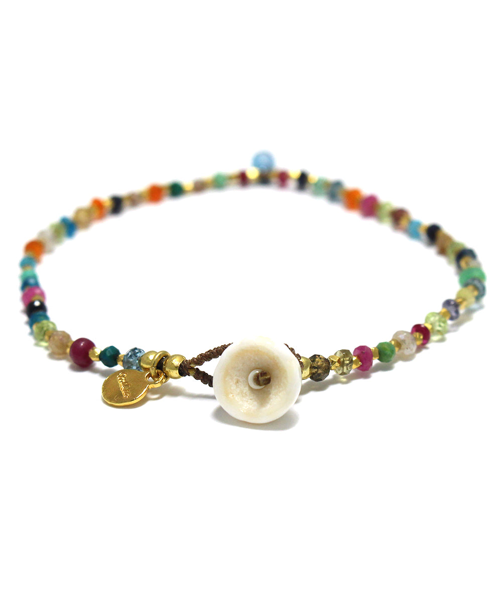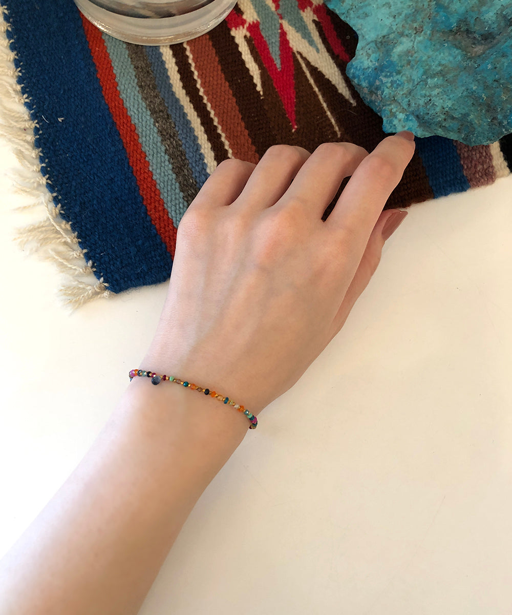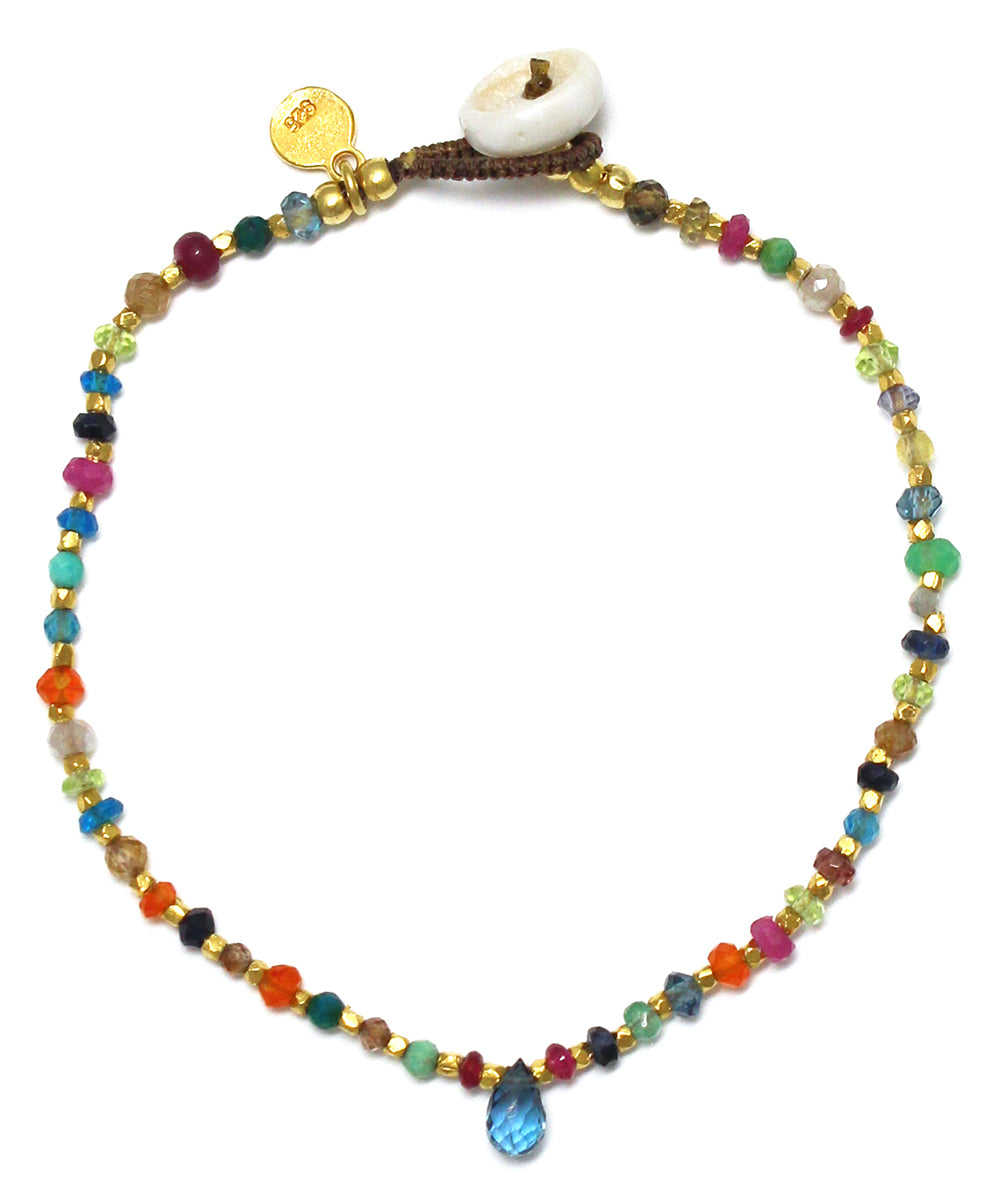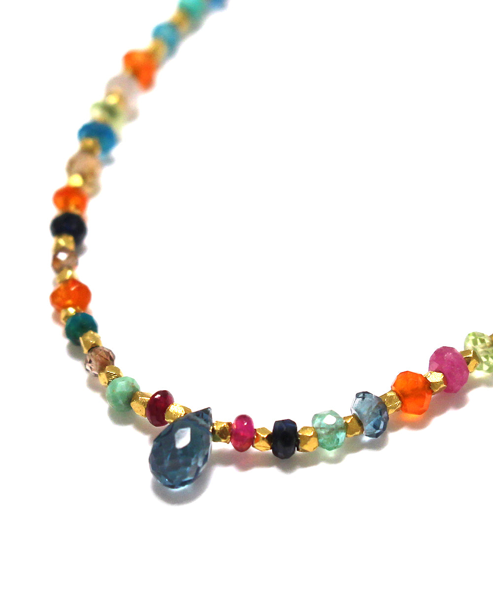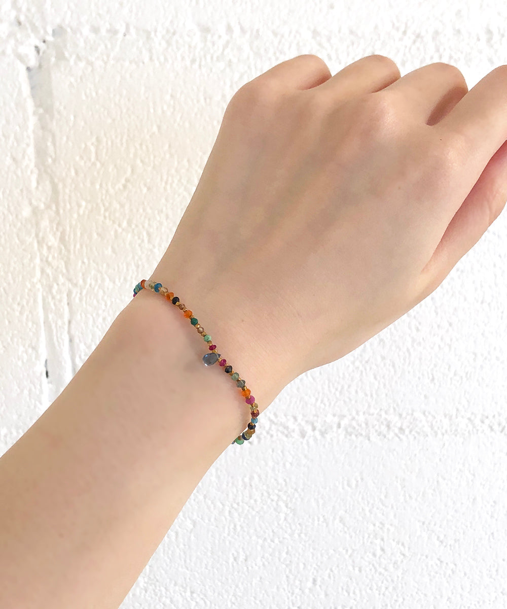 深海のようなブルーのトパーズをポイントに、様々な貴石と半貴石と組み合わせた美しいマルチカラーのブレスレット。