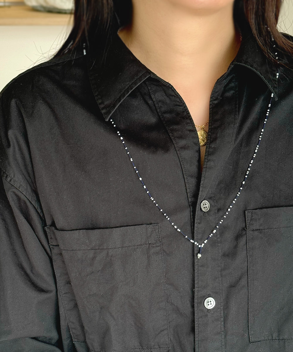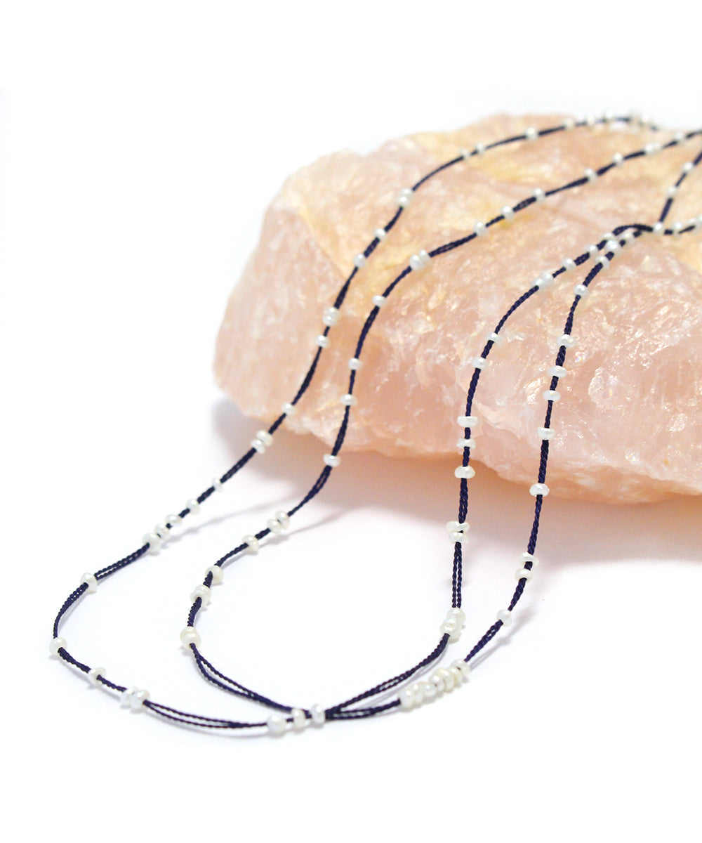 long necklace / pearlnavy|white