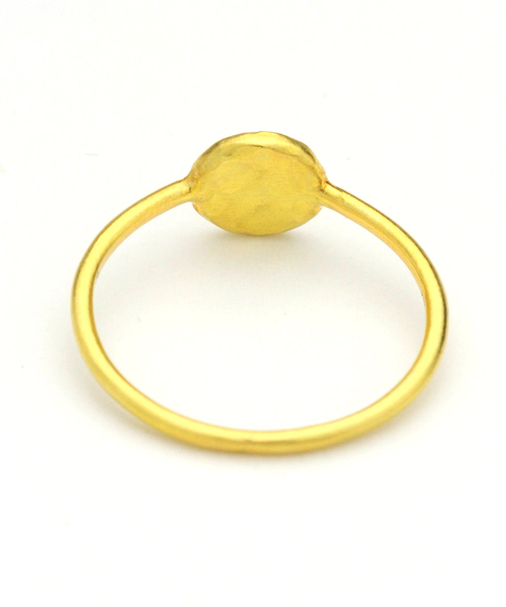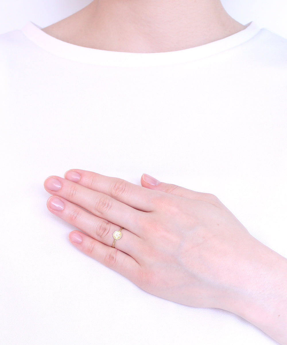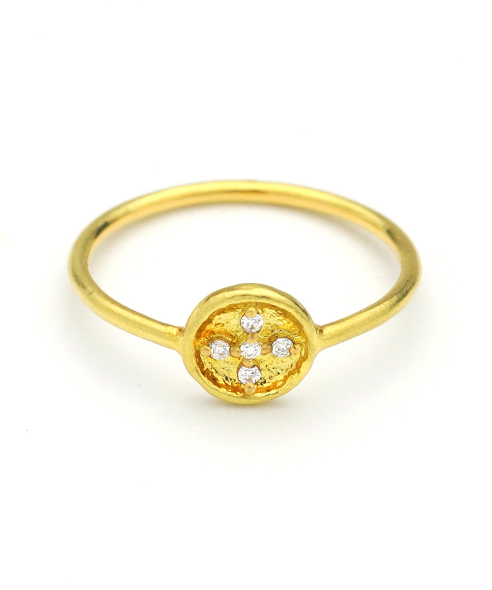 K18のリング。お皿状のトップにダイヤが5つ、クロスの形に並んでいます。