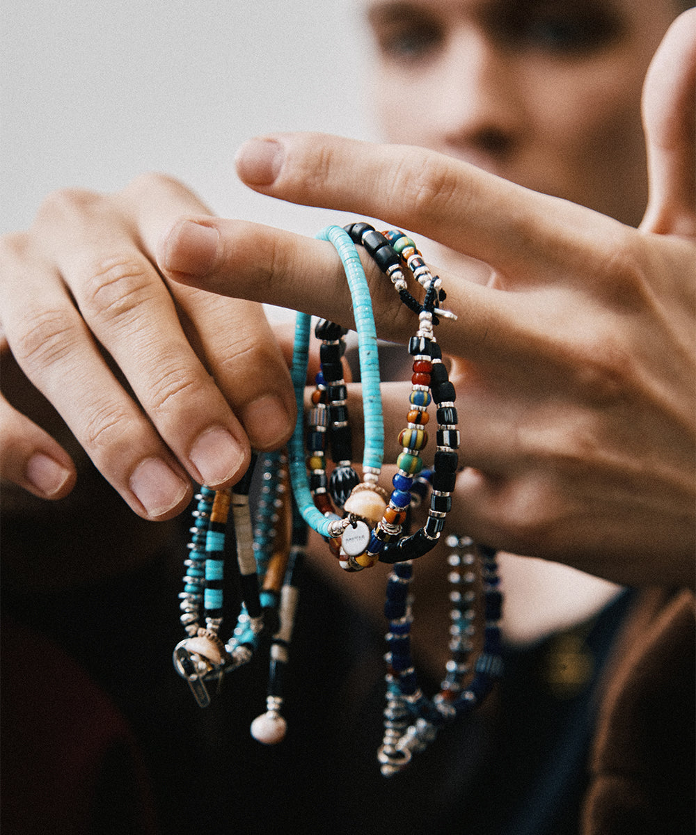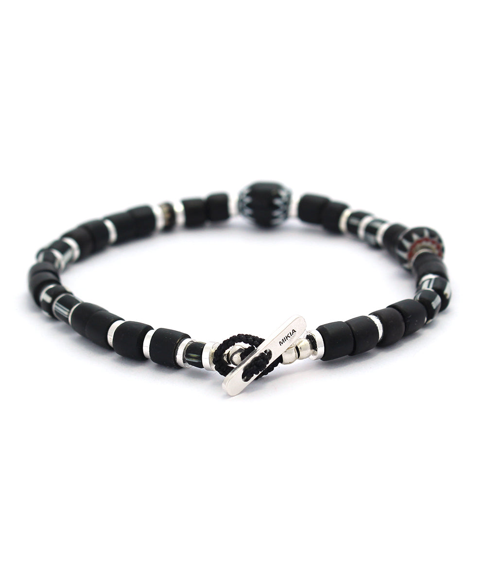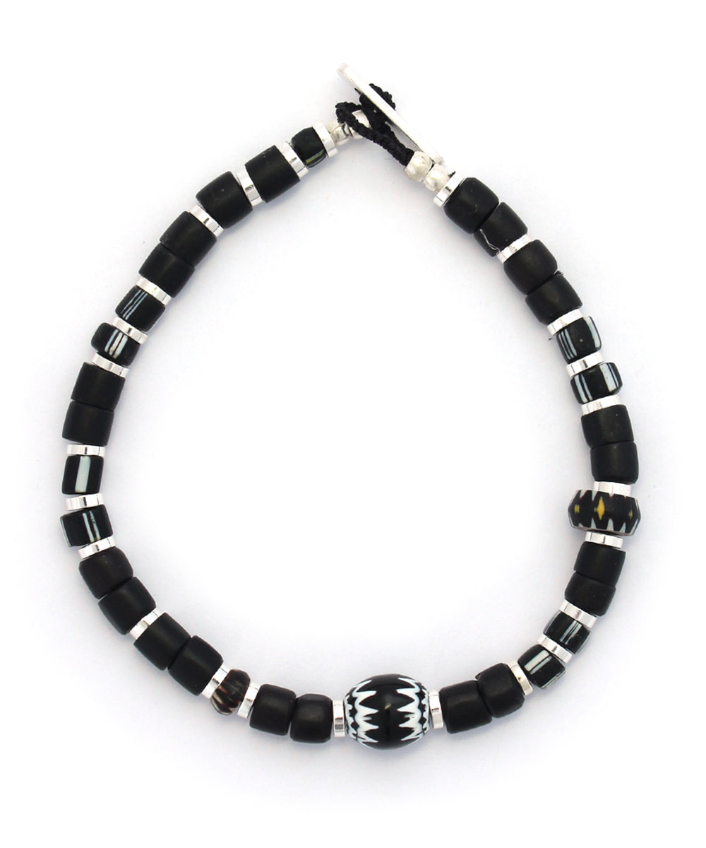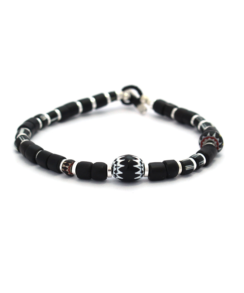 ブラックのヴェネチアンビーズがベースのブレスレット。希少なシェブロンビーズや1800年代後期方1900年代初期に作られたヴィンテージのビーズがスパイスになっています。カジュアルから様々なシーンで活躍するジュエリーです。