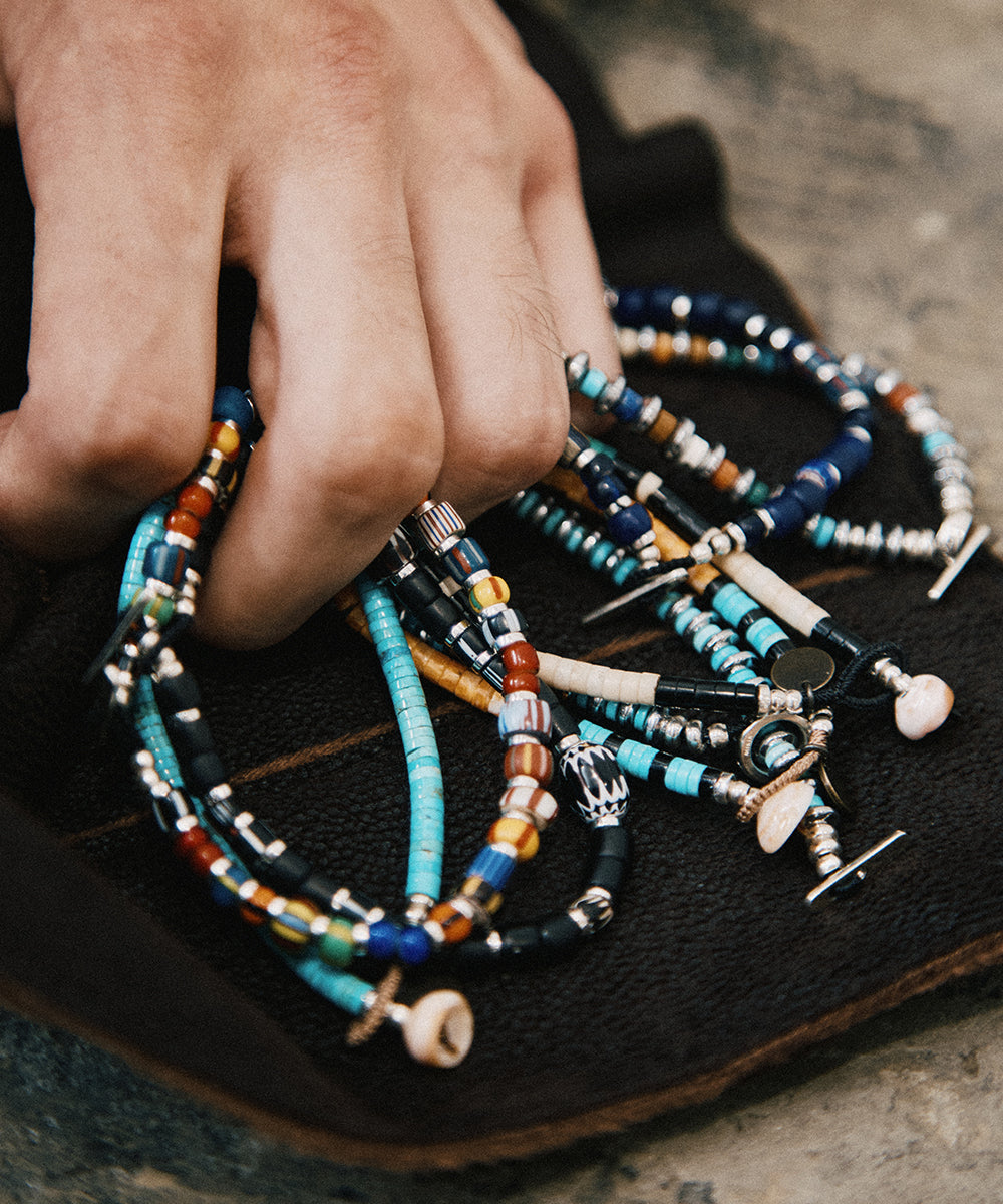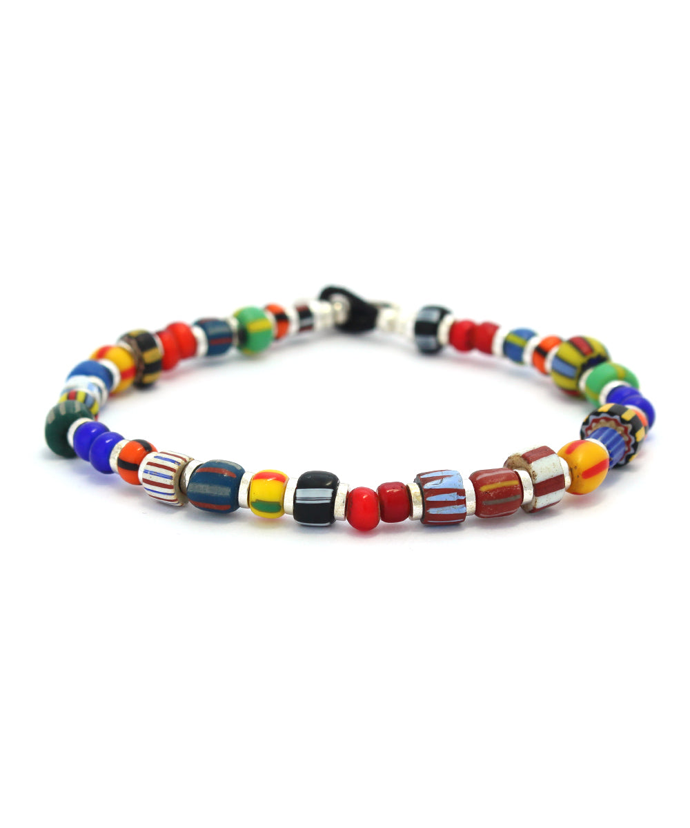 鮮やかなカラーが美しいトレードビーズをベースにシルバーと組み合わせたブレスレット。1800年代後期方1900年代初期に作られたヴィンテージのビーズを一粒づつ厳選して出来上がった一点物のジュエリーです。