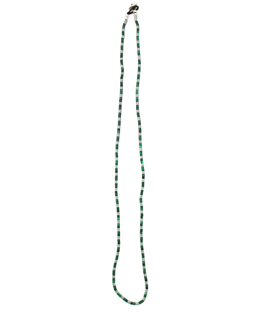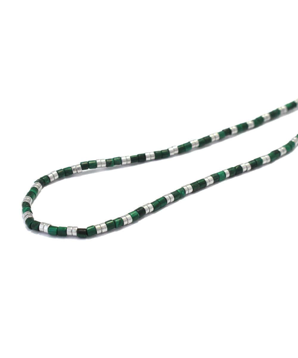 チューブ型のマラカイトとヘマタイトがバランスの良い印象のネックレス。