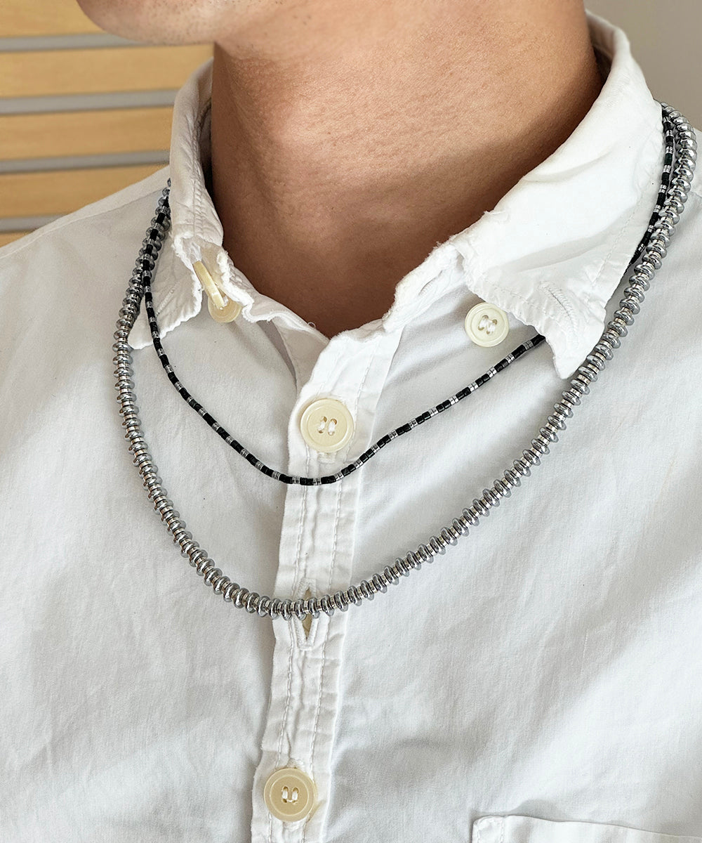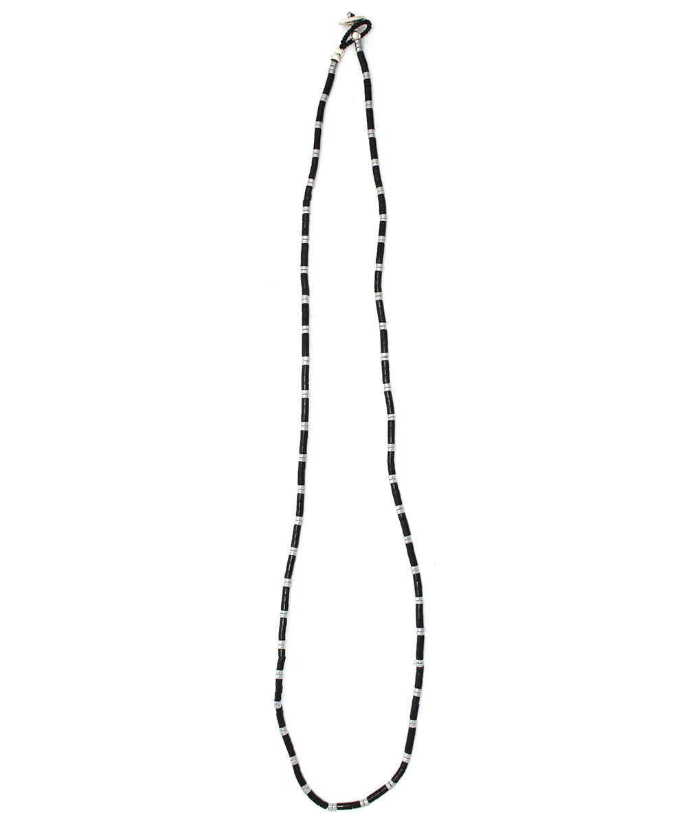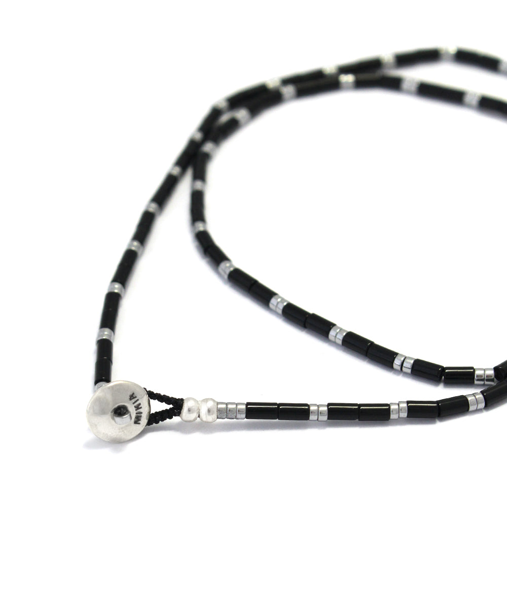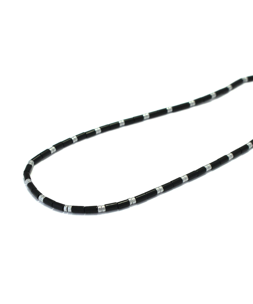 チューブ型のオニキスとヘマタイトがバランスの良い印象のネックレス。